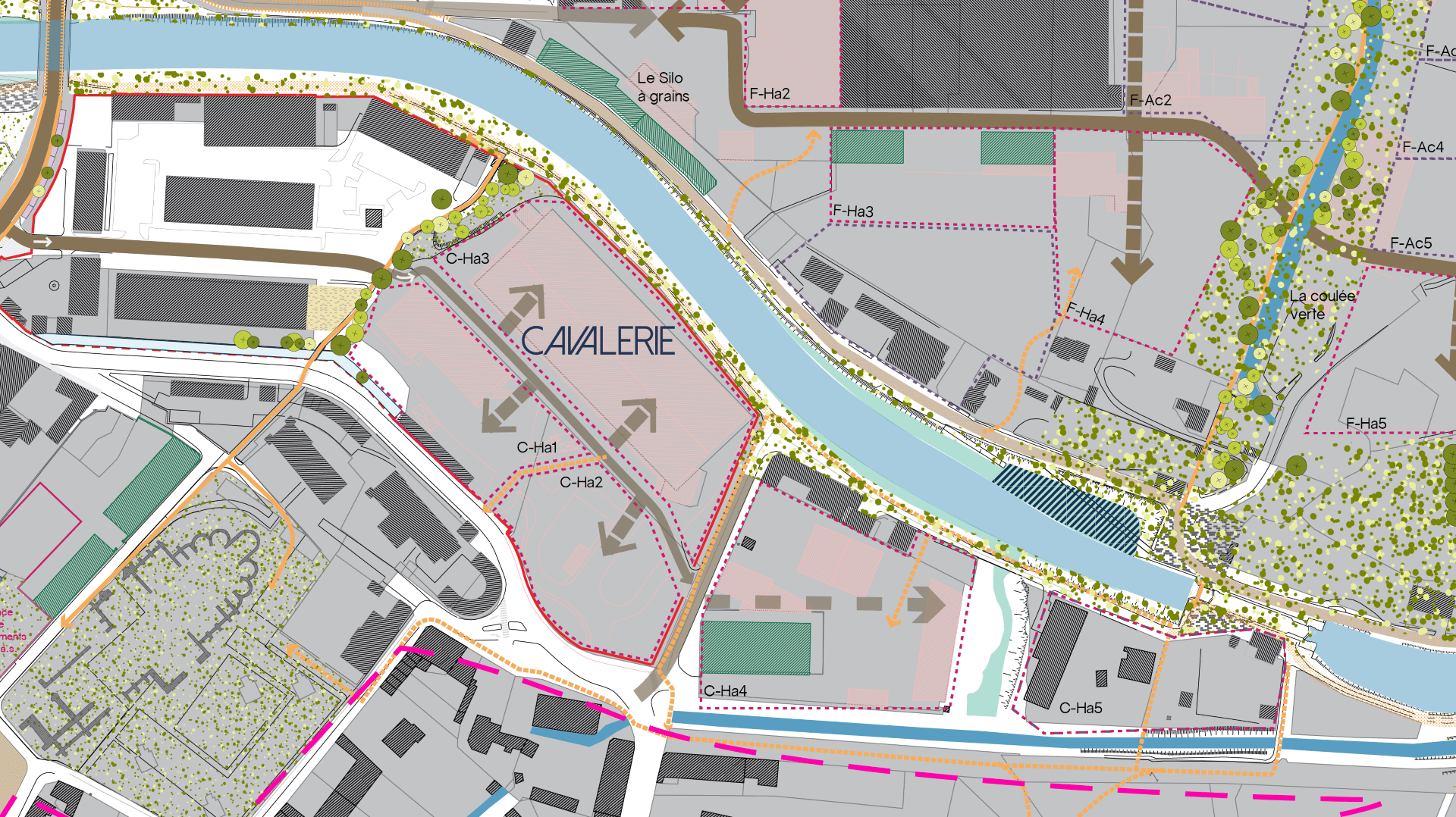 Le canal, colonne vertébrale du quartier et support du parc urbain d’agglomération