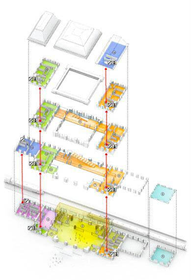 Après le démantèlement des fortifications, un travail de couture a été réalisé avec le cœur de ville et l’on a conservé les mêmes hauteurs et gabarits de construction. La couleur brique rouge et le style architectural du quartier marquent une différence avec le centre-ville et ses constructions en brique jaune.