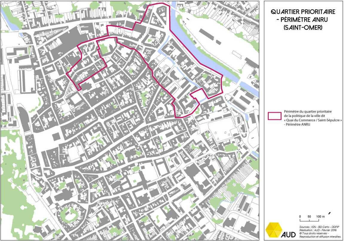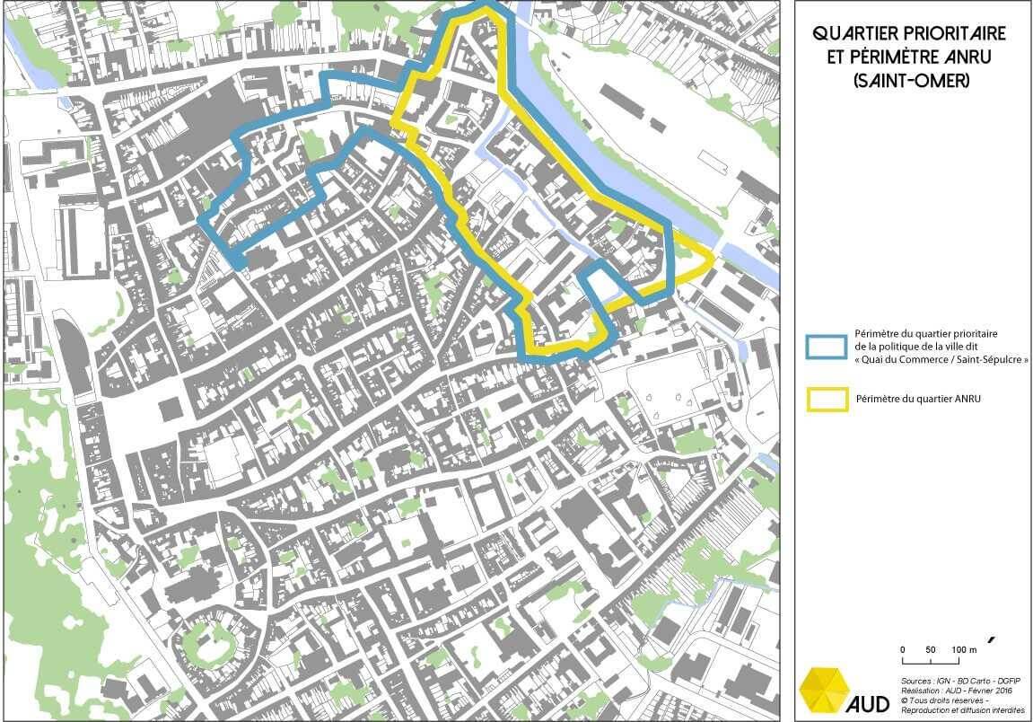 Le quartier Saint-Sépulcre - Quai du Commerce se situe au cœur du centre historique de Saint-Omer. Le démantèlement des fortifications de la ville à la fin du XIXe siècle a modifié le quartier avec la création du quai du Commerce et le redressement du canal de Neuffossé. Ce dernier constitue néanmoins toujours la limite physique de la ville historique.